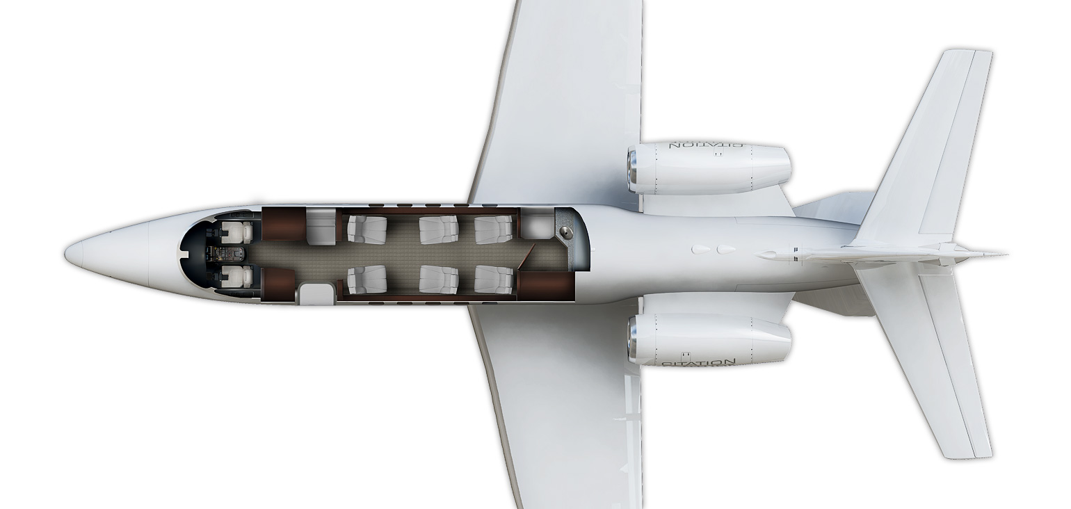 The Citation II was a direct development from the Citation I. The earlier aircraft's success in the market led Cessna to believe there was demand for a larger aircraft that utilized the same design philosophy. The result was the Citation II, which had a maximum seating capacity of 10. In addition to more seats, the plane had more powerful JT15D-4 engines (2,500 lbf (11 kN) thrust per engine), increase of fuel capacity to approximately 5000 lbs, faster speeds and longer range. First flight was on January 31, 1977, and the aircraft was certified for two-pilot operation in March, 1978. A total of 603 aircraft were built before the Citation II was replaced by the Bravo in the production line.